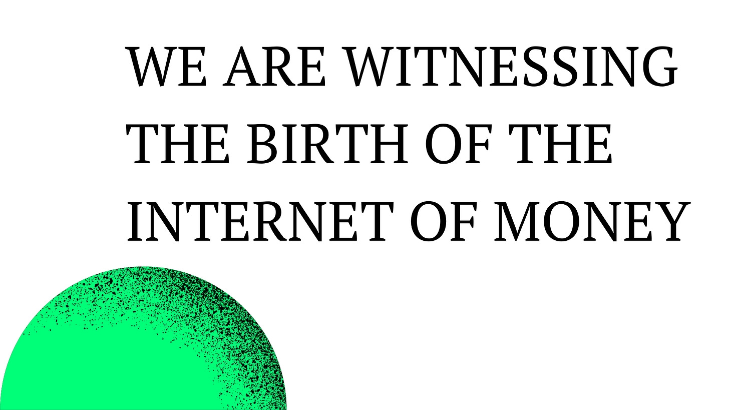 We are witnessing the birth of the internet of money. It’s here, growing and maturing. You can use it right now.