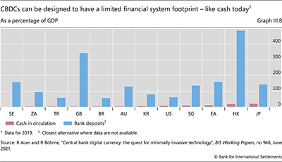 In addition to these operational considerations, the broader impact on financial intermediation activity is an important consideration in assessing the economic impact of CBDCs. Just like cash, CBDCs can be designed to maximise usefulness in payments, without giving rise to large inflows onto the central bank's balance sheet. The design of CBDCs should further mitigate the systemic implications for financial intermediation, by ensuring that commercial banks can continue to serve as intermediaries between savers and borrowers. While cash offers safety and convenience in payments, it is not widely used as store of value. Today, consumers' holdings of cash for payment purposes are in fact minimal in comparison with sight deposits at commercial banks (Graph III.8).