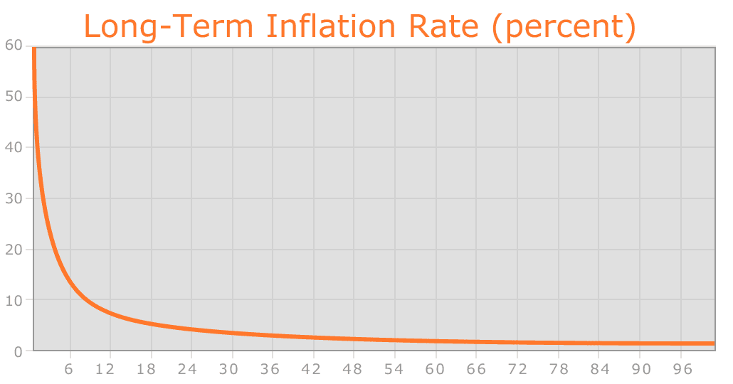 Despite the linear currency issuance, just like with Bitcoin over time the supply growth rate nevertheless tends to zero.