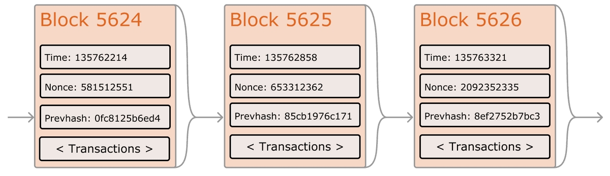 If we had access to a trustworthy centralized service, this system would be trivial to implement; it could simply be coded exactly as described, using a centralized server's hard drive to keep track of the state. However, with Bitcoin we are trying to build a decentralized currency system, so we will need to combine the state transaction system with a consensus system in order to ensure that everyone agrees on the order of transactions. Bitcoin's decentralized consensus process requires nodes in the network to continuously attempt to produce packages of transactions called "blocks". The network is intended to produce roughly one block every ten minutes, with each block containing a timestamp, a nonce, a reference to (ie. hash of) the previous block and a list of all of the transactions that have taken place since the previous block. Over time, this creates a persistent, ever-growing, "blockchain" that constantly updates to represent the latest state of the Bitcoin ledger.