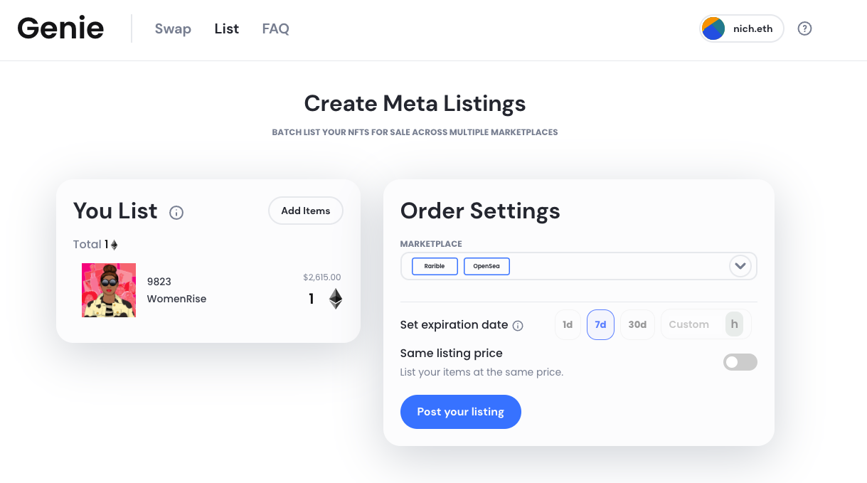 Cross-Marketplace listing on Genie