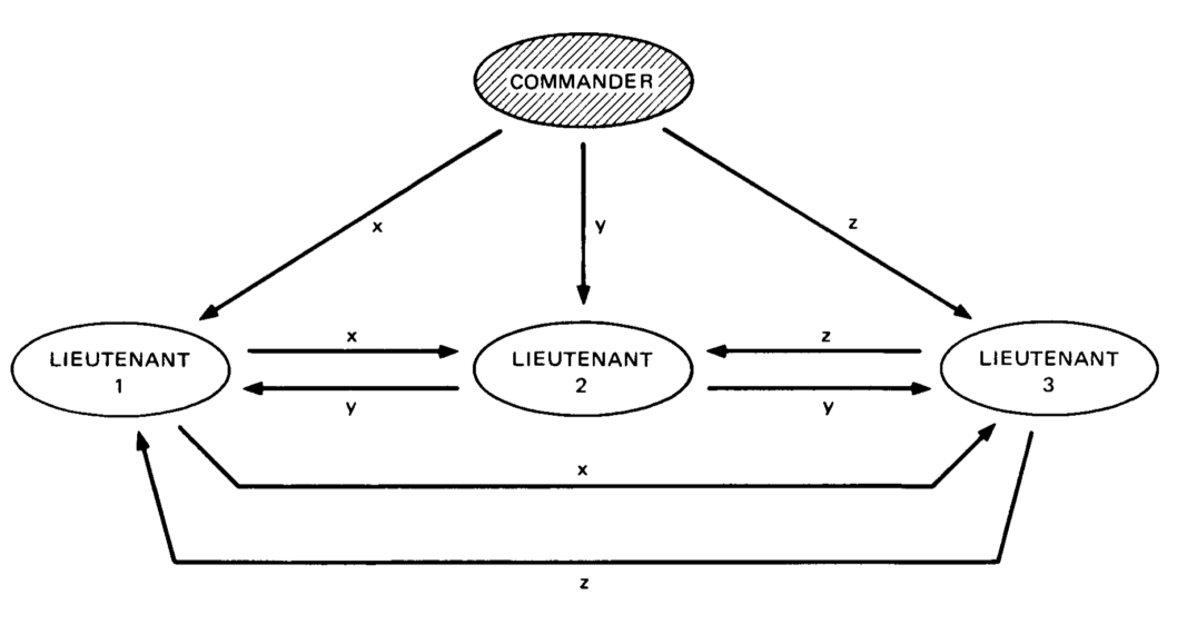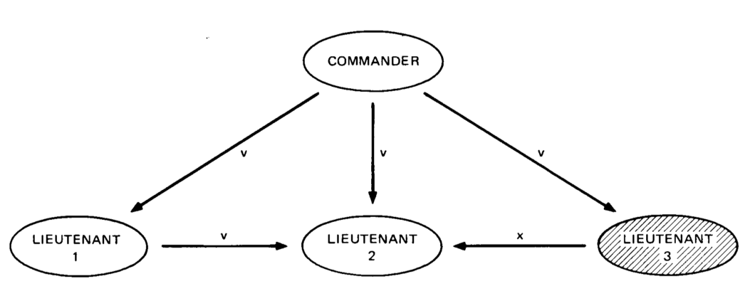 The leader-follower paradigm described in the Two Generals Problem is transformed to a commander-lieutenant setup. In order to achieve consensus here, the commander and every lieutenant must agree on the same decision (for simplicity attack or retreat).