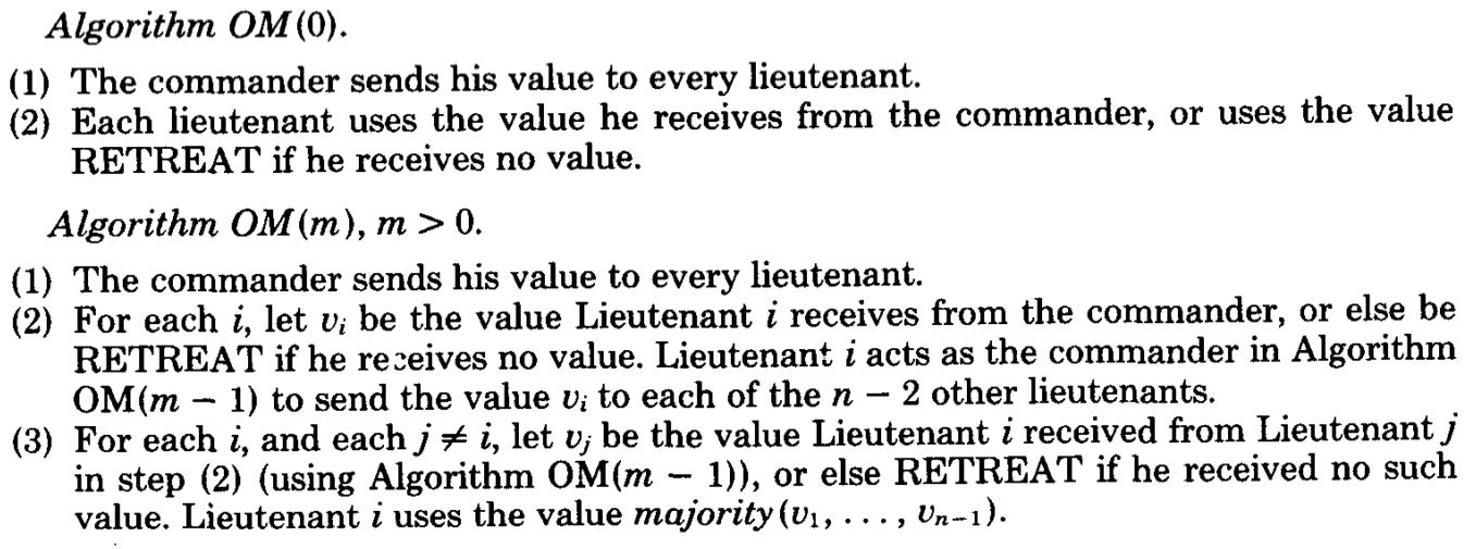 m = 0 → no traitors, each lieutenant obeys | m > 0 → each lieutenant’s final choice comes from the majority of all lieutenant’s choices