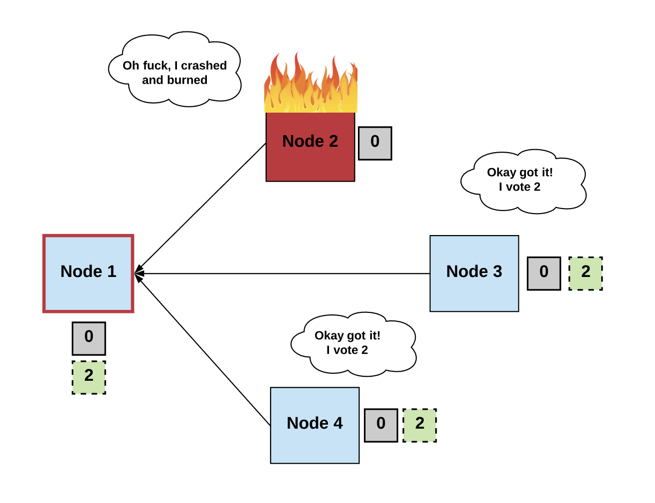 Crash-faults are easier to handle because we can model the process as either working or crashed — 0 or 1. The processes can’t act maliciously and lie. Therefore, in a crash fault-tolerant system, a distributed system can be built where a simple majority is enough to reach a consensus.