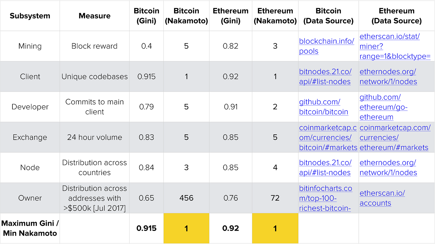 And here’s a table where we’ve assembled the Nakamoto coefficients of each subsystem: