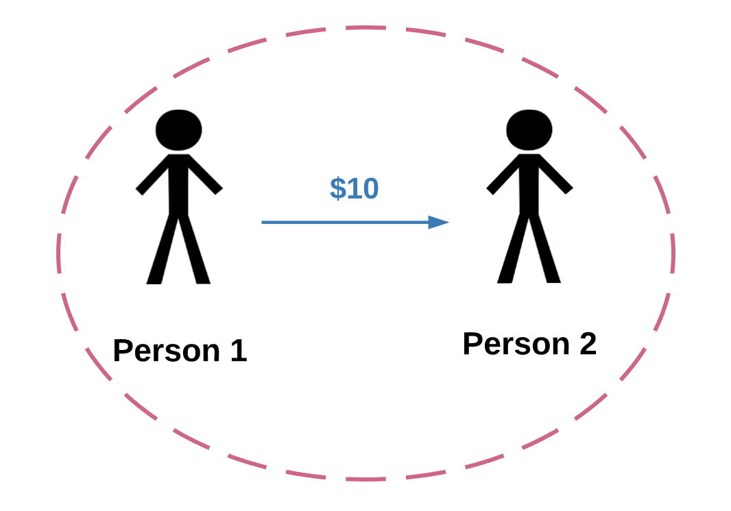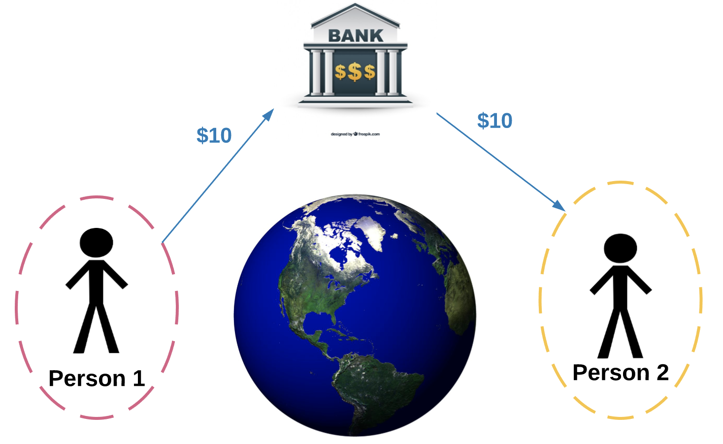 While theoretically flawless, this transactional system is limited. Consider: two individuals may trade with one another only when they are in close physical proximity. For economies to function at scale, a transactional system should enable transfers with anyone in the world, regardless of distance.
