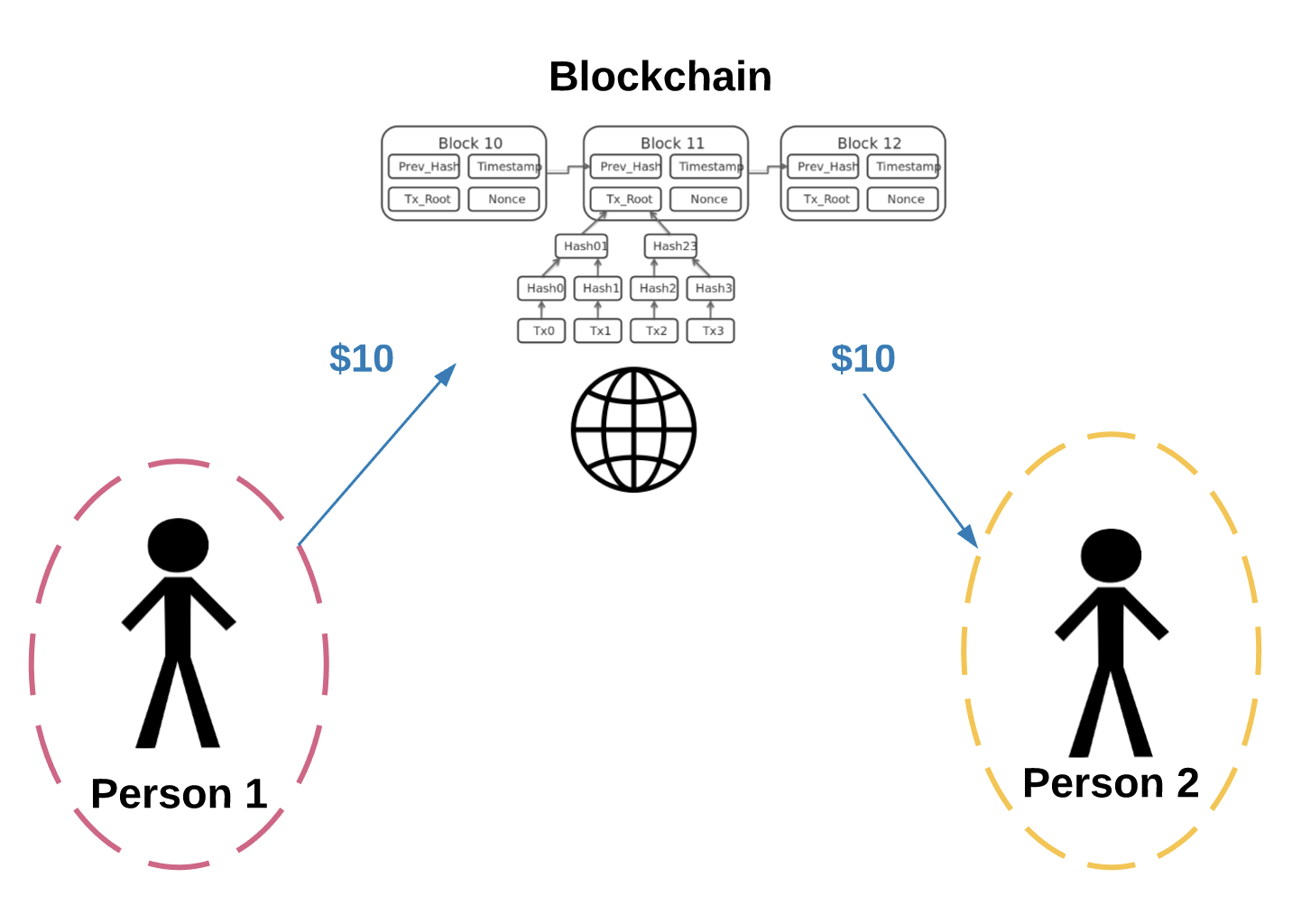 Blockchains define a protocol that allows two individuals to transact with one another in a “peer-to-peer” manner over the Internet. When you digitally transfer value from one account to another on the blockchain, you’re trusting the underlying blockchain system to both enable that transfer and ensure sender authenticity and currency validity.