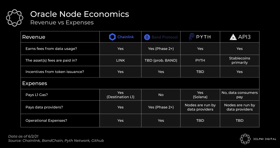 If private, proprietary data sources are a moat, how can these oracle solutions onboard them? Let’s start with Chainlink because there are really two distinct roles they want to recruit for – data providers and oracle nodes. For data providers, the main benefit of onboarding is the ability to monetize their data by working with Chainlink to put it on-chain. This can be a lucrative opportunity, but are they leaving money on the table by sharing revenue with oracle node operators? Indeed, this realization was partly the impetus for why Pyth and API3 were launched. Disintermediate the middlemen, boost profitability for the data providers.